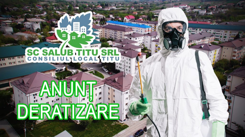 ✔ SC SALUB TITU SRL, în colaborare cu Primăria Orașului Titu, vă aduce la cunoștință că în perioada 06-16 aprilie 2025, cu posibilitate de prelungire în funcție de condițiile meteo, va desfășura lucrări de deratizare (combaterea rozătoarelor) pe domeniul public al orașului.