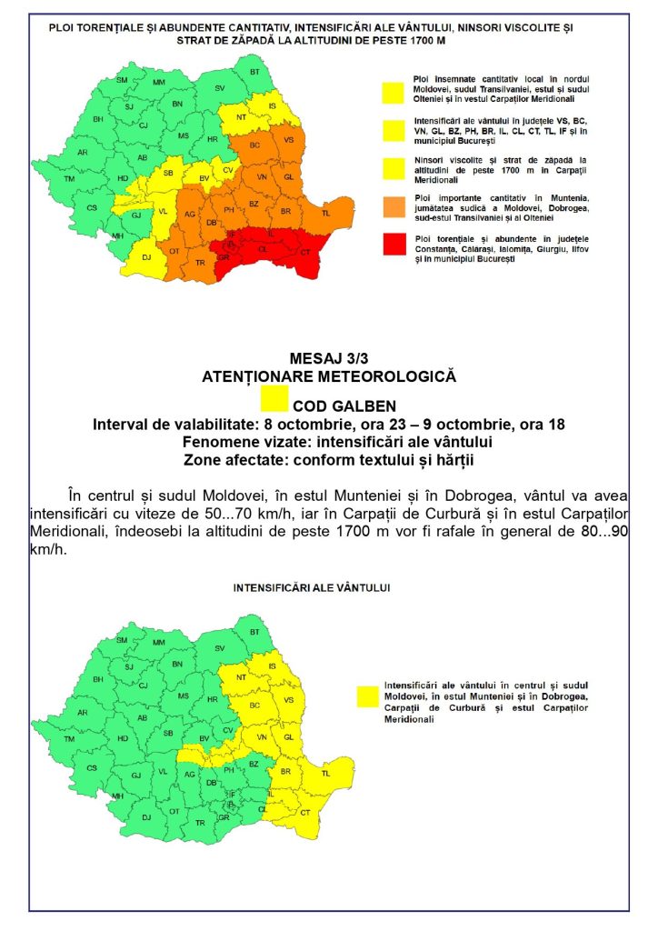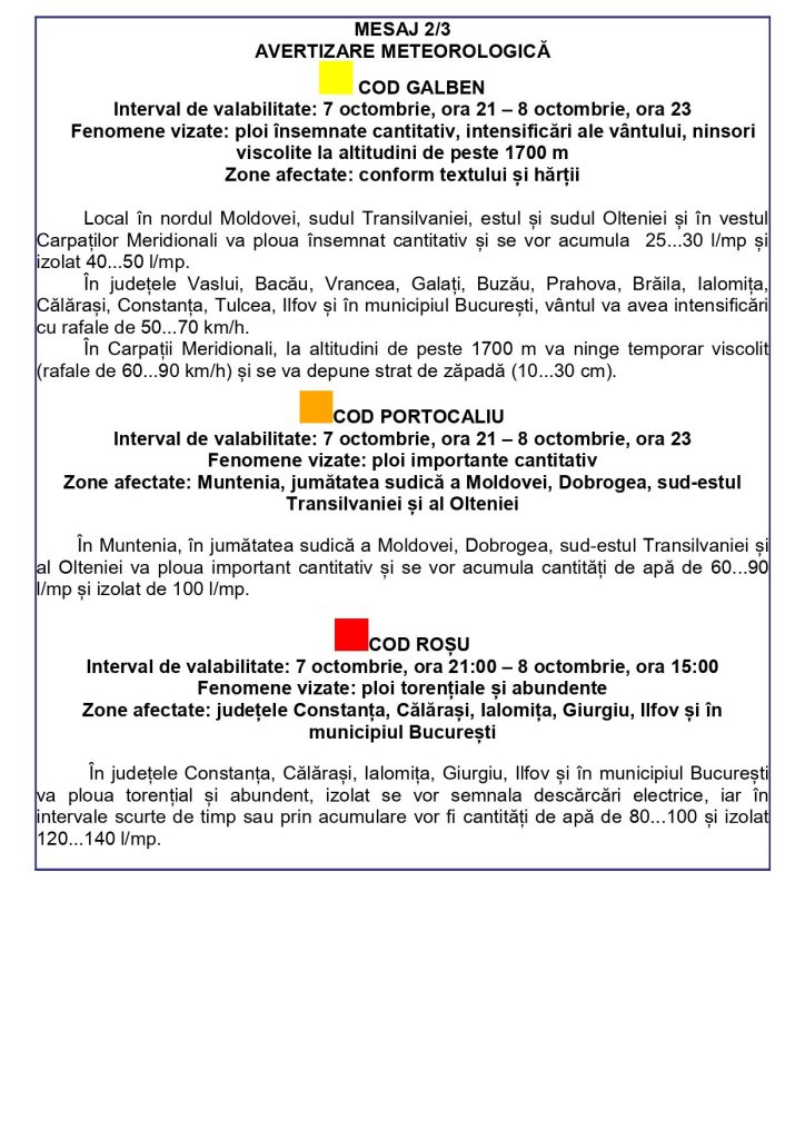 Interval de valabilitate: 07 octombrie 2025, ora 18:00 – 09 octombrie 2025, ora 12:00