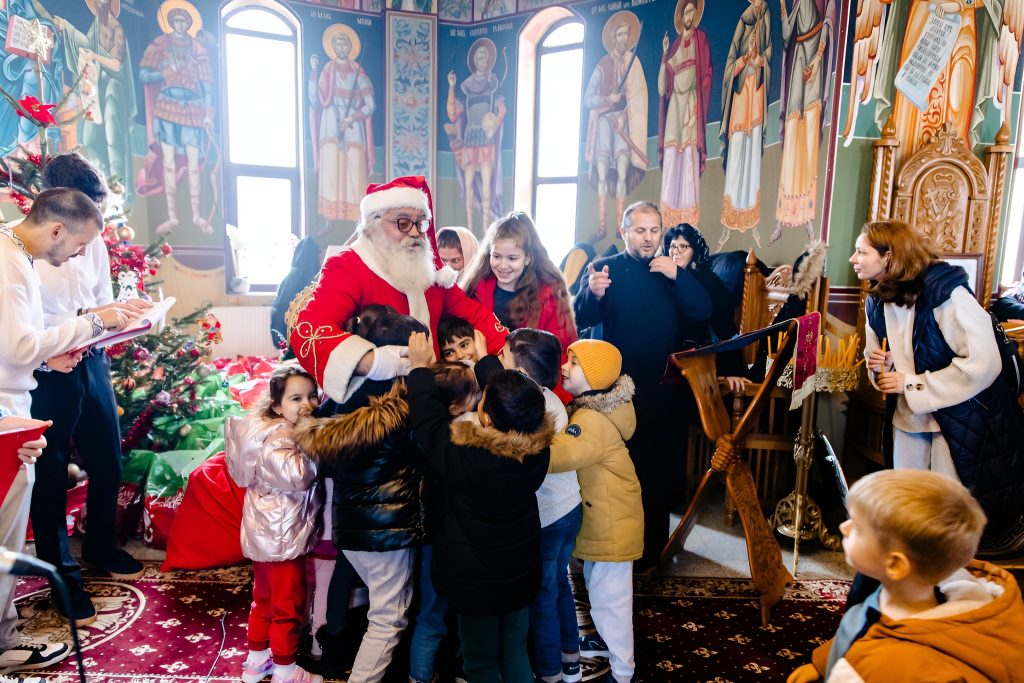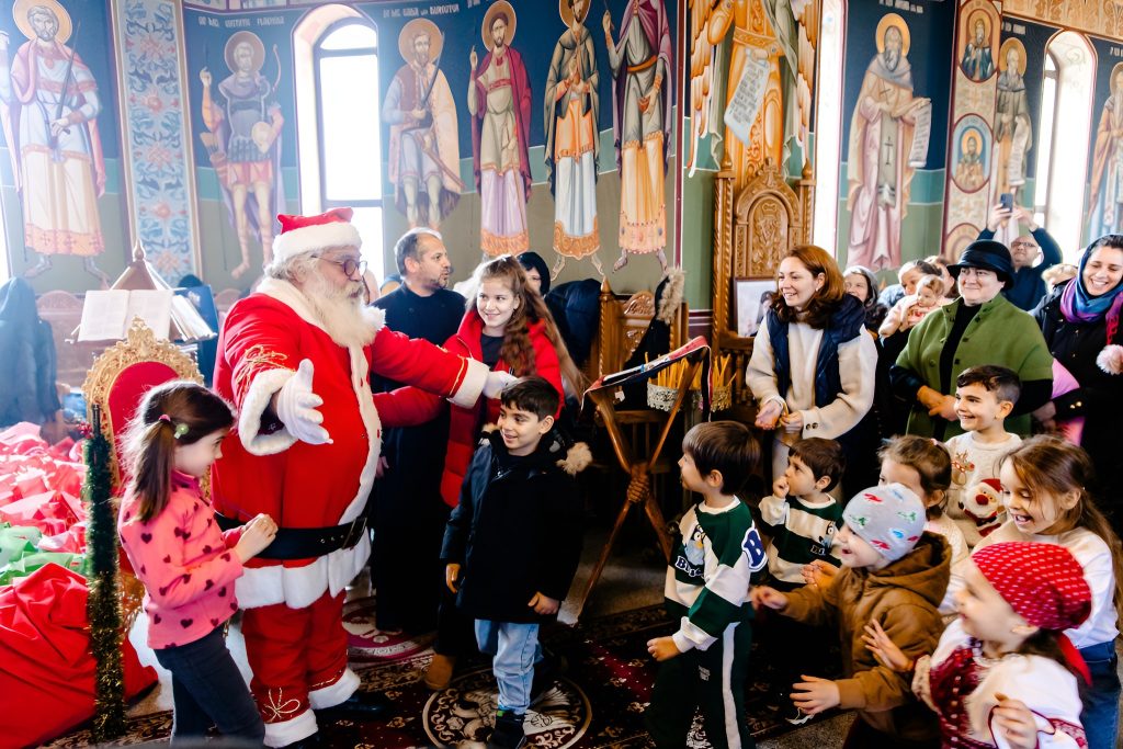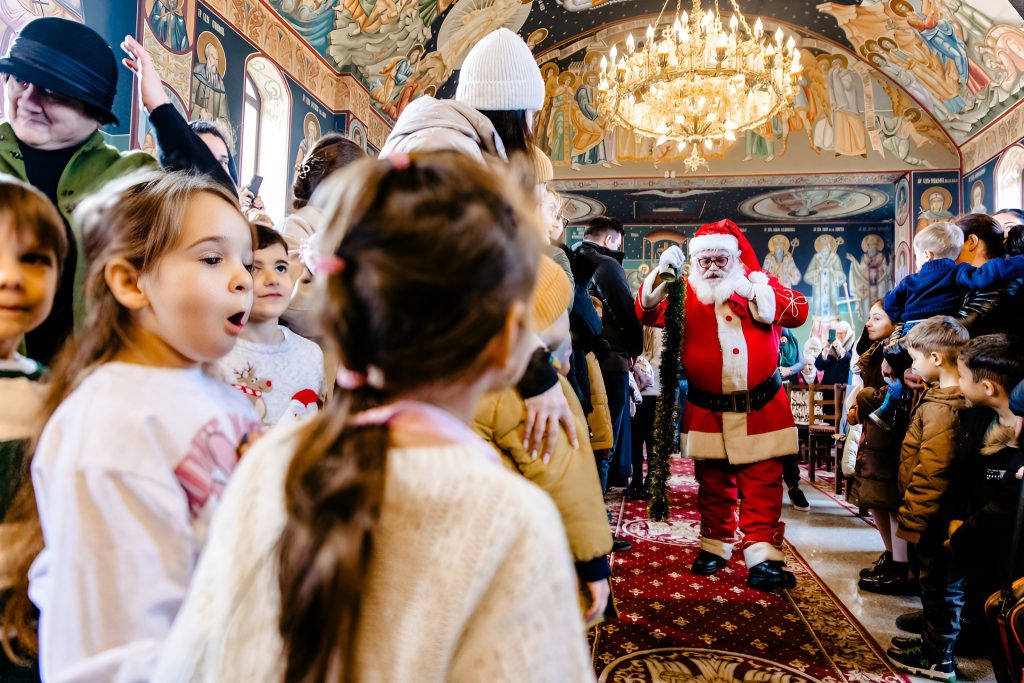 Bucuria momentului a fost completată de apariția lui Moș Crăciun, care a oferit daruri copiilor prezenți la eveniment, stârnind zâmbete și emoție.