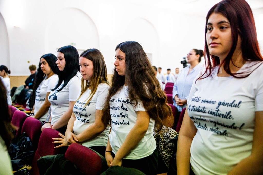 Pe tot parcursul evenimentului, elevii clasei a XI-a C, de la Liceul Tehnologic„Goga Ionescu”- coordonați de doamna profesoară Georgiana Vlăsceanu, au adus cel mai frumos omagiu prin purtarea tricourilor inscripționate cu strofe din poeziile eminesciene și chipul marelui poet Mihai Eminescu, dar și un recital poetic al elevului Nicolae Victor.